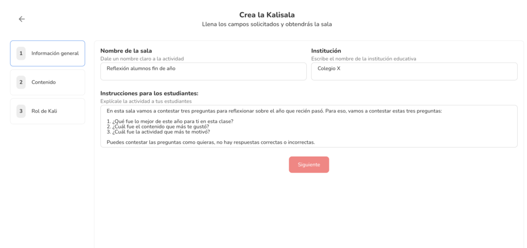 Para esto, te recomendamos usar una Kali Sala, para que los alumnos no sientan que se trata de una actividad estandarizada. Deja que contesten libremente para que las respuestas te sirvan para preparar mejor el año que viene.